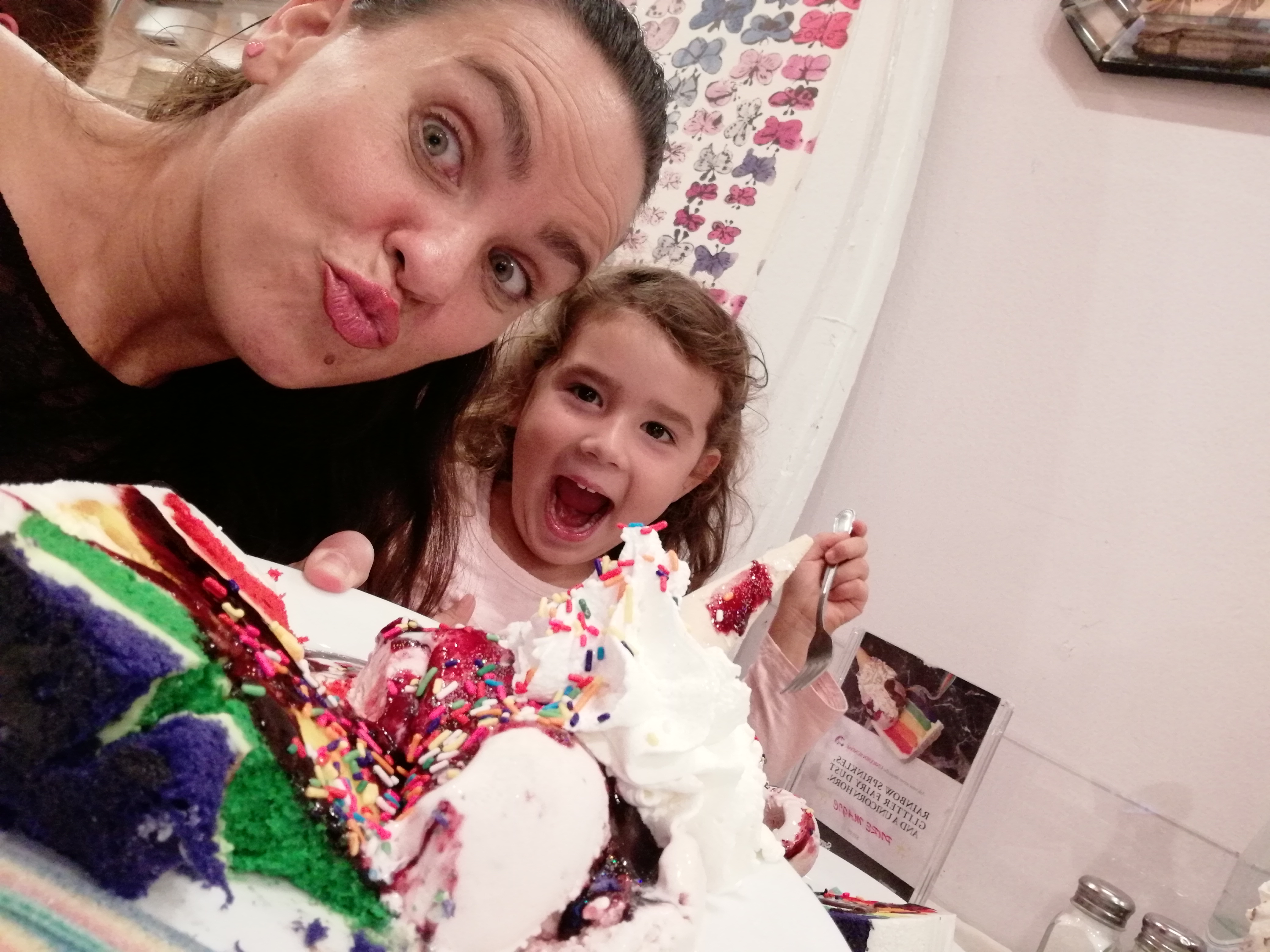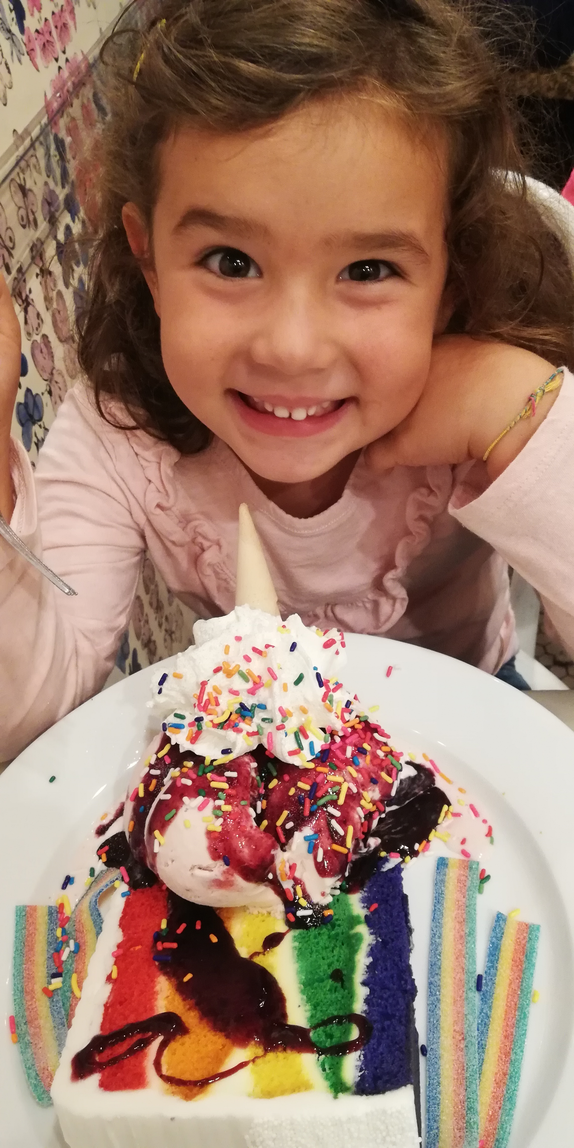 Devo confessare che, nonostante io sia particolarmente ghiotta e soprattutto potrei cenare con il gelato tutte le sere, non ce l’ho fatta a finire tutto il piatto! La foto non rende la grandezza…era davvero gigante! Ma la torta era buona e soprattutto ha messo subito di buon umore me e Nora….insomma non capita tutti i giorni di vedere il gelato all’Unicorno! Ovviamente niente a che vedere con il super gelato che si vende a San Gimignano….ma i colori e soprattutto il gusto di poter mangiare un piattone di ghiottonerie tutte insieme ti lancia letteralmente nel paese dei balocchi. Ritorni bambina solo per il gusto di sapere che ti stai mangiando tanti colori con una torta che ti fa venire la carie solo a guardarla!