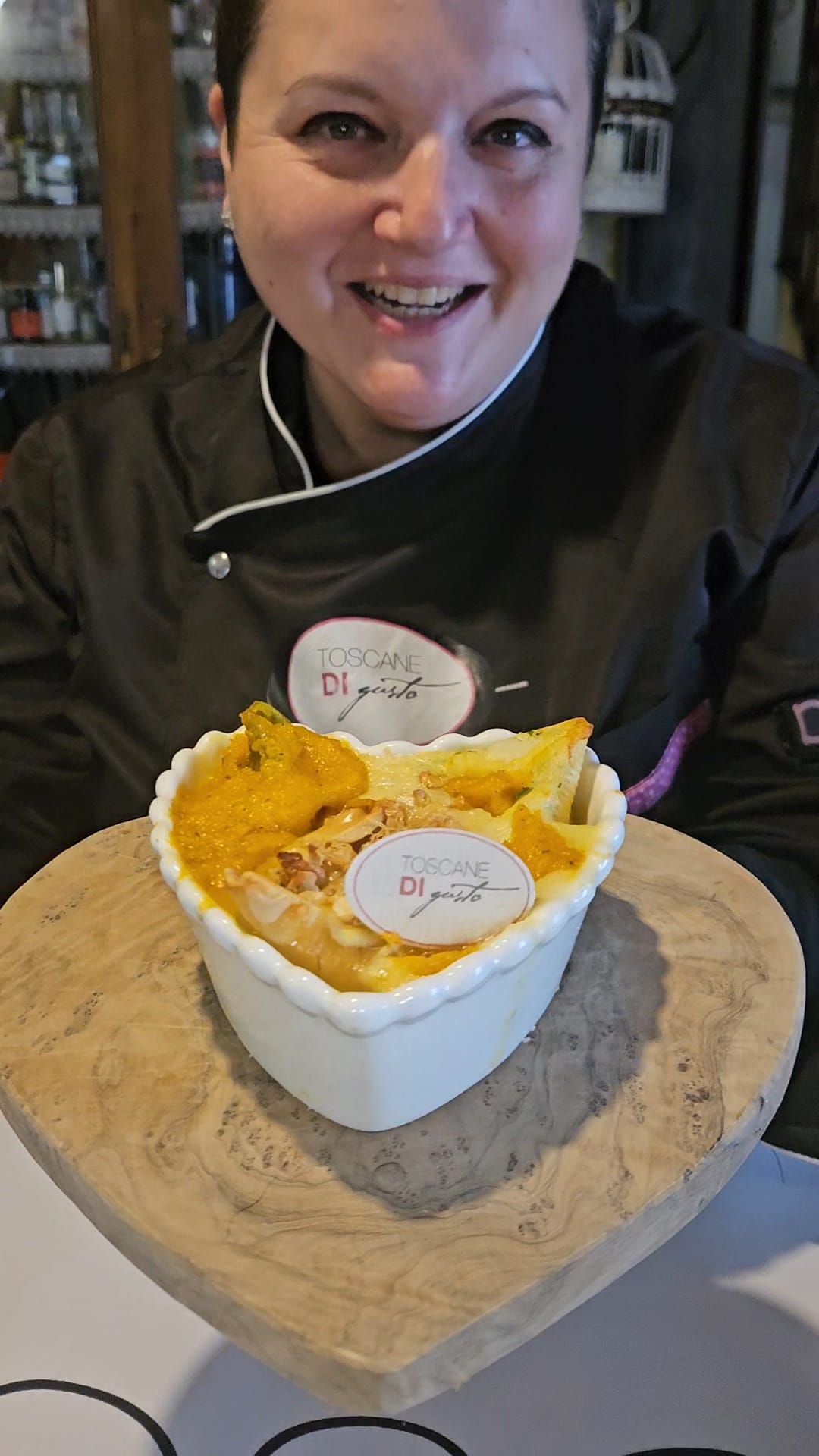 Infornate in forno preriscaldato a 180°C per circa 20 minuti, finché la superficie sarà leggermente dorata. A fine cottura aggiungete la crema di zucca frullata e servite ben caldo.